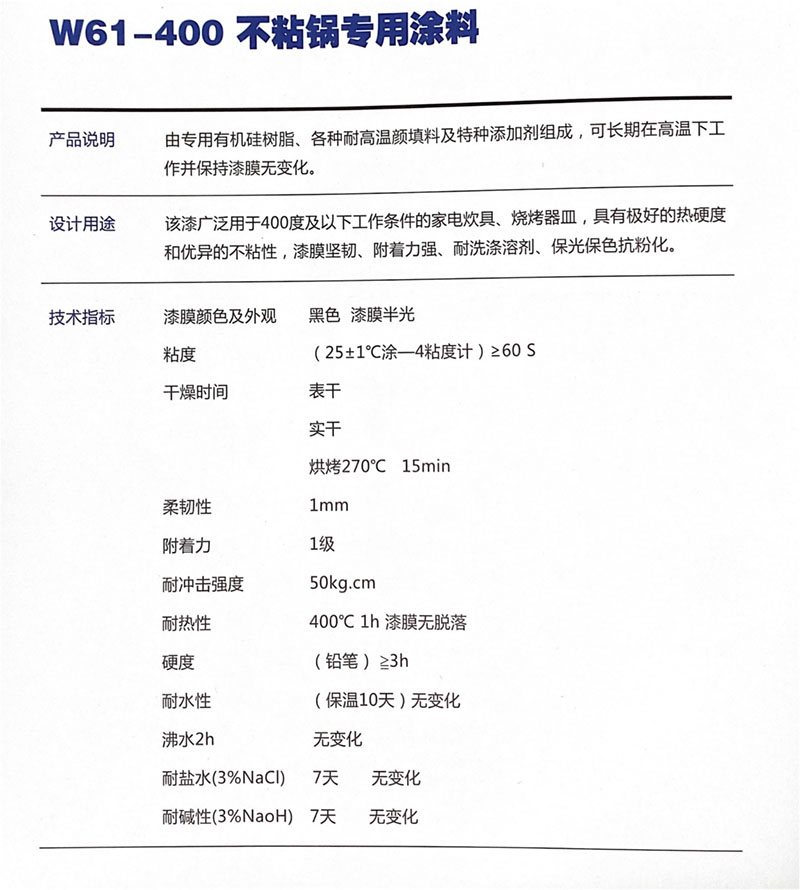 W61-400不粘鍋專用耐高溫漆